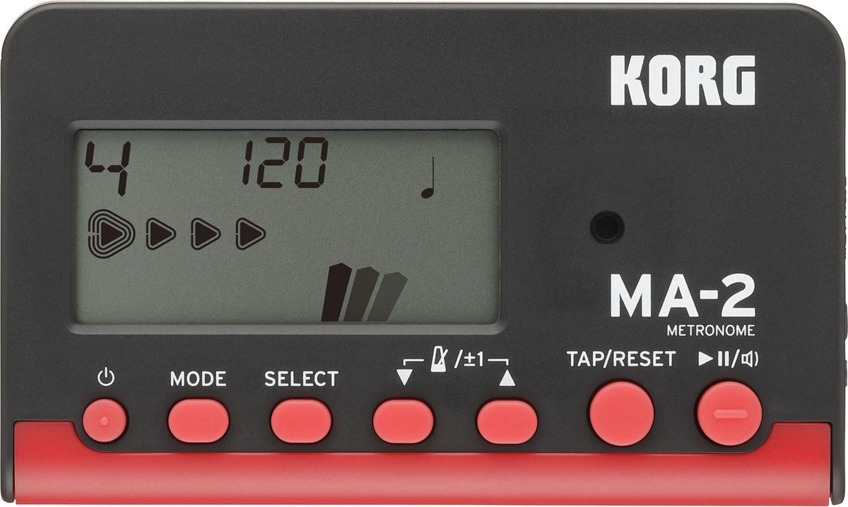 Een metronoom is een onmisbaar onderdeel bij het oefenen van ritme. Naast de basis functie van het tempo aangeven heeft de MA2 ook een Timer Mode en een Sound Out Mode. In de timer mode werkt het als een alarm die aangeeft wanneer een bepaald aantal tijd voorbij is, instelbaar vanaf 1 tot 120 minuten. In Sound-Out mode geeft de MA2 een referentie noot, te kiezen uit de octaaf van C4 t/m B4, om te helpen stemmen.