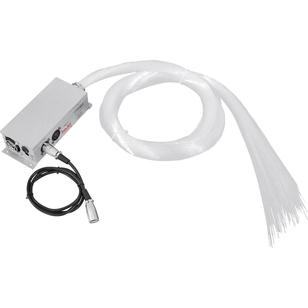 Fiber lightInnumerable uses: as a starry ceiling, firework display, as a unique curtain of light, for Christmas, parties and holiday lighting, etc.Fibre optic strands are bundled together and attached onto an illuminatorLight is transmitted along the length of the fibres to shine at the tipsOperable via DIP switches or DMX interfaceDMX512 control possible via any commercial DMX controller (occupies 4 channels)Sound-control via... lees meer over dit product