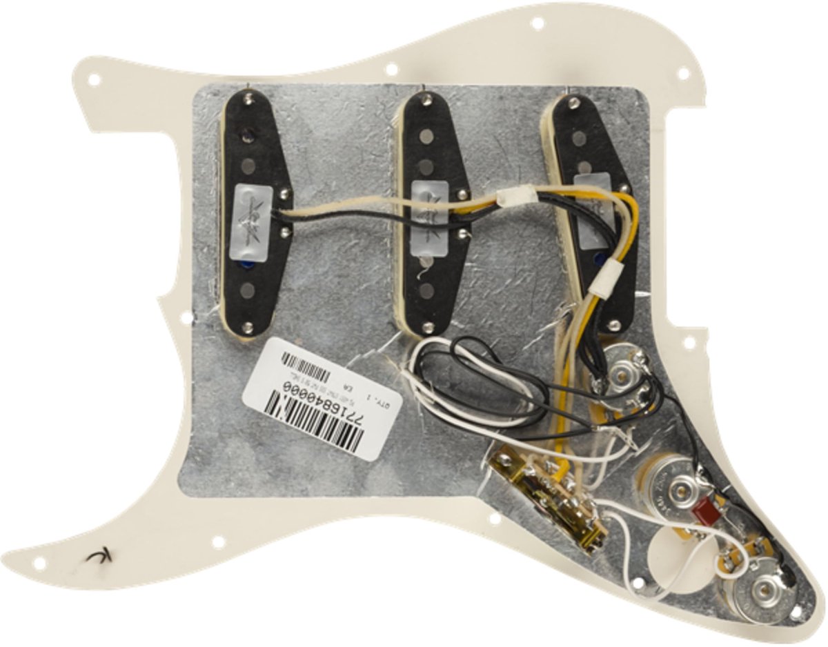 Met de Fender Pre-Wired Pickguard Strat SSS Fat '50s biedt Fender een voorbedrade pickguard met de klassieke sound van de fifties. Drie Fat '50s single coils van de Fender Custom Shop worden hiervoor gebruikt, die met getrapte en handgepolijste Alnico V magneten en gematigde Formvar wikkeling de sound van de vroege Strats met extra bass produceren. Voor bromvrije performances in de tussenposities 2 en 4 wordt de pickup in de m... lees meer over dit product