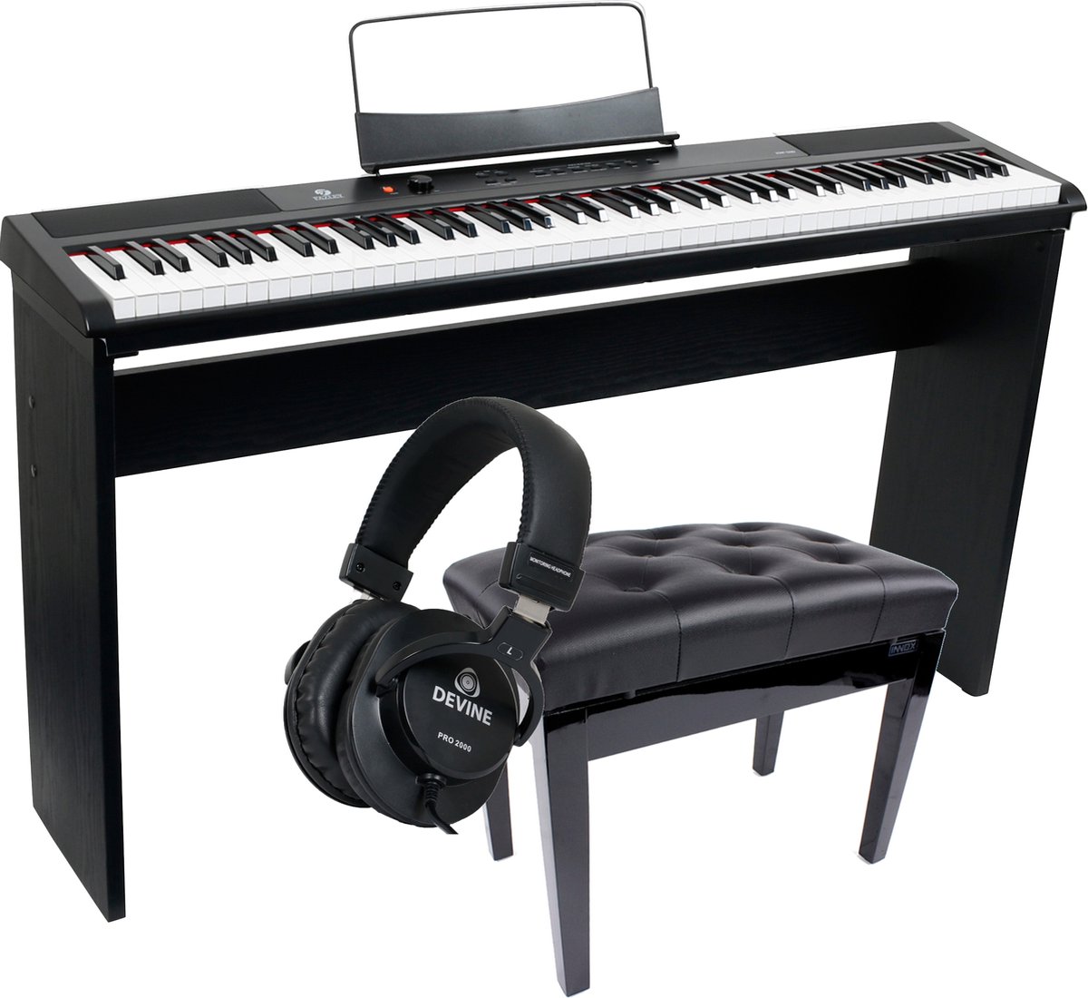 Fazley FSP-200-BK digitale piano zwart + onderstel + pianobank + hoofdtelefoon