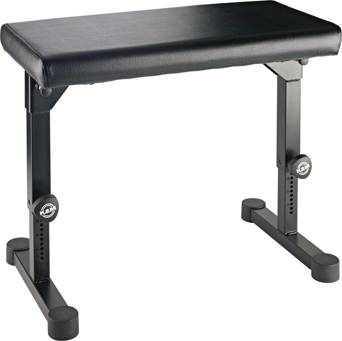 Het compacte stalen buizenframe en de grote ronde parketbeschermers geven de K&M 14087 bank een uitstekende stabiliteit. Het comfortabele zitkussen, bekleed met aantrekkelijk skaileer, zorgt voor een aangename en ontspannen ervaring bij het musiceren. Vergrendelbare klemschroeven aan beide zijden maken een eenvoudige en nauwkeurige hoogte-instelling mogelijk. Dankzij de gegraveerde hoogteschaal kan elke muzikant snel en duidelijk zijn ideale instelling vinden. De twee inklapbare poten zorgen voor een compact en plat pakket, waardoor de extreem stevige bank gemakkelijk te vervoeren is in een handomdraai. Het ontwerp van de bank is een aanvulling op de 18810 en 18820 keyboardtafels. De K&M 14087 bank in n oogopslag: . Afwerking: : zwart kunstleer. inklapbaar; met gegraveerde hoogteschaal. Gewicht: 9.5 kg. Afmeting ingeklapt: 650 x 375 x 228 mm. Hoogte: van 423 tot 623 mm. Hoogteverstelling: Vergrendeling klemschroeven. Materiaal: Staal. Zitting: Gestoffeerde zitting met kunstlederen bekleding, 660 x 330 mm. MS-ID: PIA0002489-000. Fabrikant: . Body Finish: matte. Kleurbetekenis: Black. Kleur: Schwarz. in hoogte verstelbaar: Yes. Cover: Imitation Leather. Voering: Yes. Music tray: No. Rubber Feet: Ja. Wielen: Nee. Weight (kg): 9.5. Keys, Banken, Pianobanken.