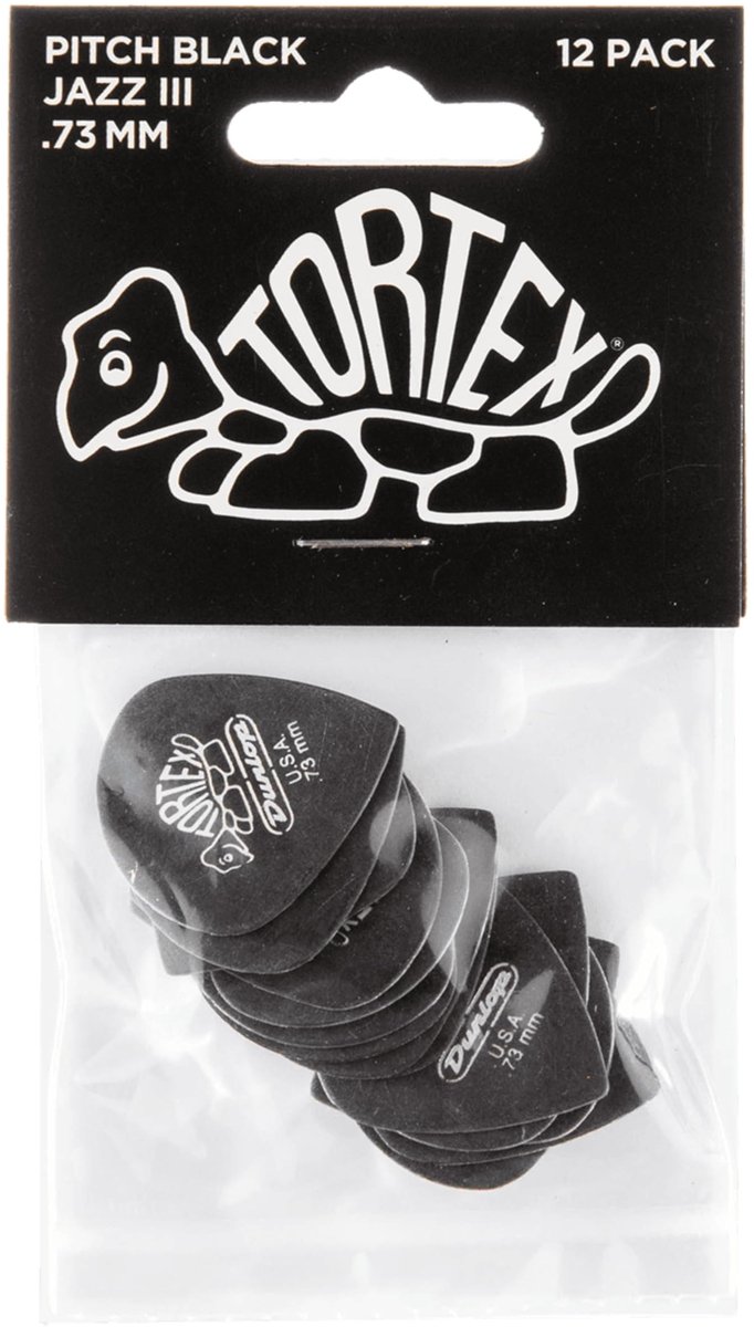 Dunlop Tortex Pitch Black Jazz III 0.73mm 12-pack plectrumset zwart